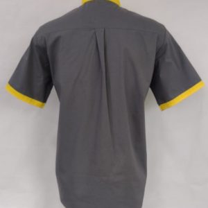 CAMISA SOCIAL MANGA CURTA CINZA COM GOLA E BRAÇADEIRA EM AMARELO LOGO NO PEITO, COM VELCRO NO PEITO ESQUERDO, MODELO PADRÃO VTAL