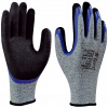 Luva de segurança confeccionada com fios de elastano e fibra de vidro com polietileno ( HPPE – Polietileno de alta densidade), revestida com poliuretano, na face palmar e pontas dos dedos, punho com elastano e formato anatômico.